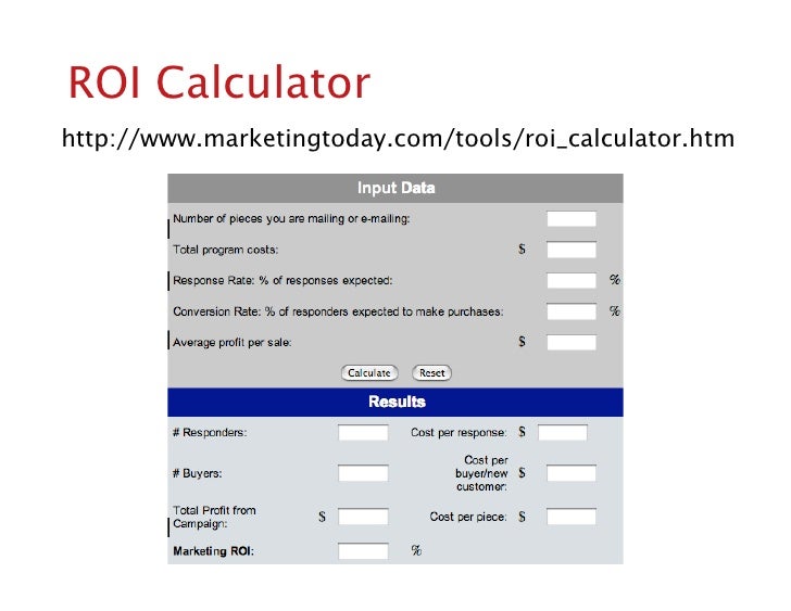 Direct Mail ROI Example: Number of pieces you will mail How to Measure Your Direct Mail Campaign's Success Using Return-On-Investment Tools marketing budgets and managing costs are the game plan when sales are slow. Even under such trying circumstances, direct mail can play a huge ... Visit Document