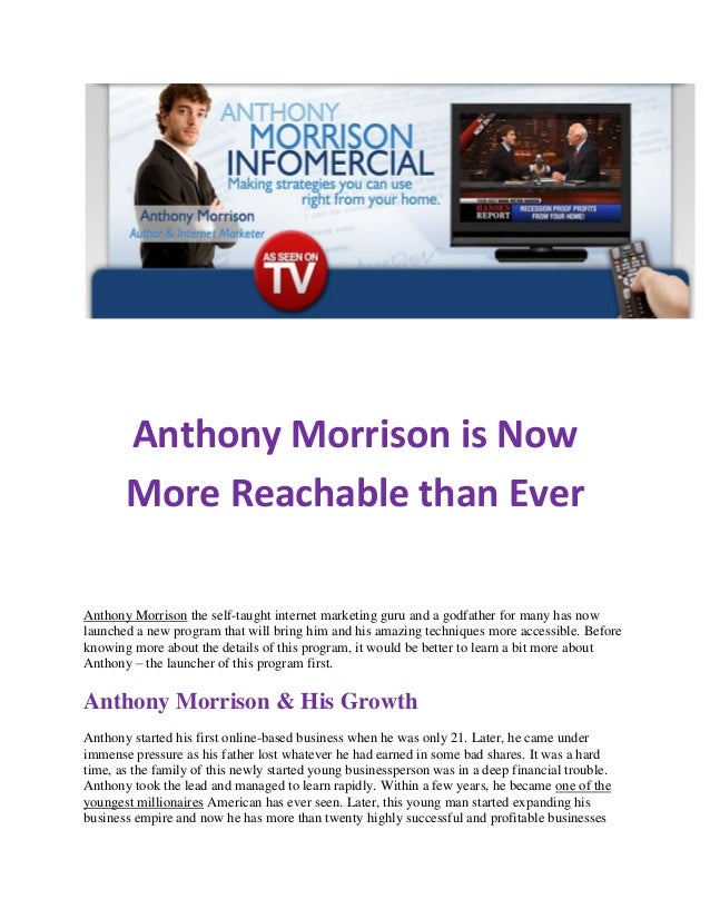 Http://www.newbizaward.com We have reviewed the entire Anthony Morrison program, and over 1000 others like it. http://www.homebasedbizreviews.com/anthonymorr ... View Video