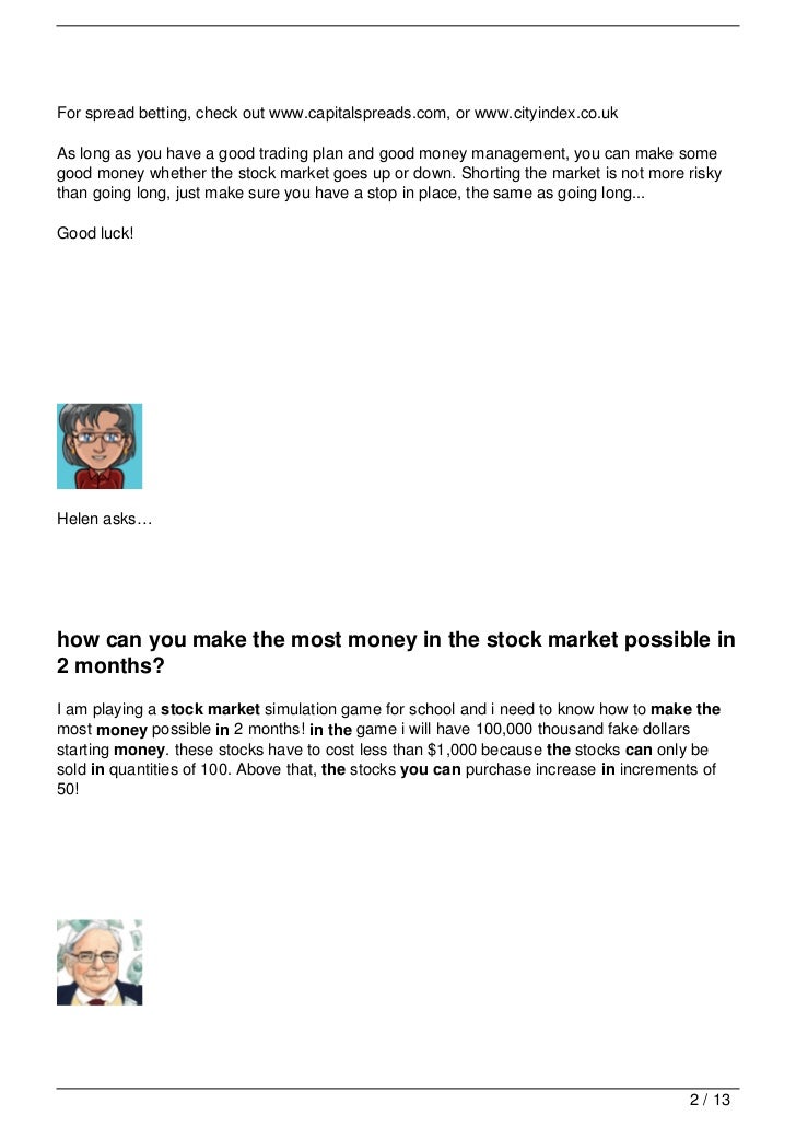 An investor can make money on a common Todd Barrow can purchase stock with the help of an account executive through the secondary market. A) private . B Last year, High-Tech Electronics earned $1.50 per share. If the current market value for a share of stock is $45, what is the ... Read Full Source