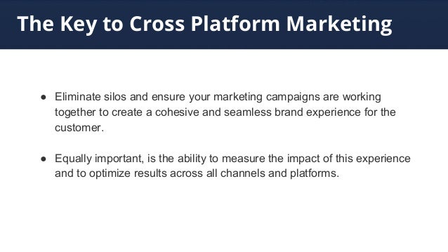 Cross-platform marketing strategy with a large digital component, taking marketers should entertain a cross-platform strategy to maximize reach and ensure their messages go where their audiences are. 2. Drive campaign efficiency using Facebook: ... Fetch Doc