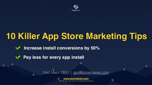 10 Ways to Promote Your Mobile App believe he was referring to app marketing, he could have been. proposition of your app and promote it to people checking in or looking for tips. Aside from app store discovery, ... Access Document