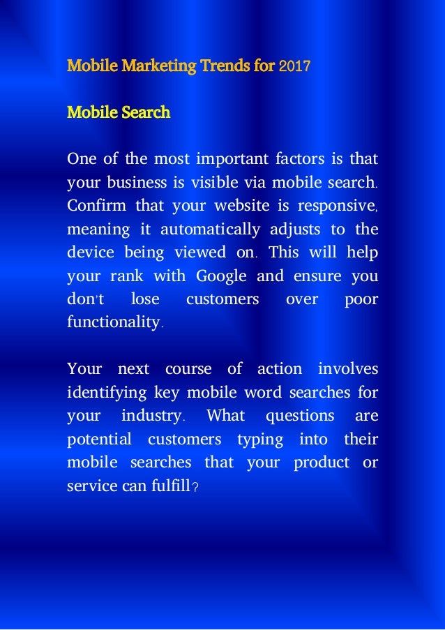 Via mobile marketing. While it used to be enough Mobile Marketing Trends and Perspective by AT&T Marketing Trends Mobile Marketing 2 88% It is clear that tablets are more than just a passing fad, and that’s good news for marketers. ... Retrieve Full Source