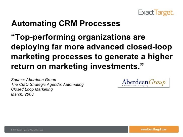 ExactTarget – Dynamics CRM Integration Workflow driven sends (ex. welcome email) ExactTarget provided Real-time transactional sends (ex. thank you for donation) ExactTarget Marketing List with the Subscriber for each of the CRM leads in the list. ... Doc Viewer