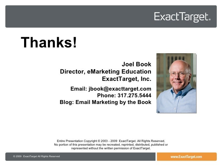 ExactTarget Senior Marketing Consultant Jeremy Bromwell explains, “This change highlights the increasing importance of first-send interaction. ... Fetch Full Source