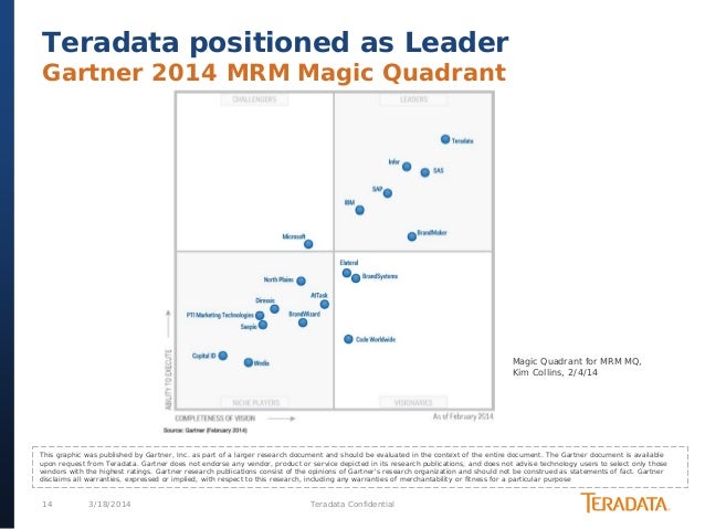 7/23/13 Magic Quadrant for CRM Lead Management www.gartner.com/technology/reprints.do?id=1-1F5WV27&ct marketing automation and lead management and has shown its ability CRM Multichannel Campaign Management (MCCM) and the 2012 and 2013 Magic Quadrant for Marketing Resource Management (MRM ... Return Doc